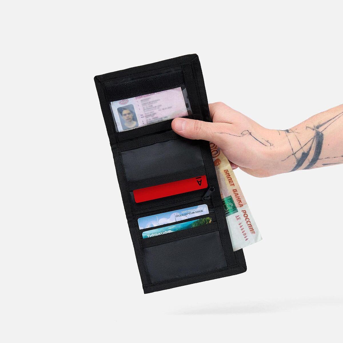 ОписаниеКлассический кошелек Anteater из премиального полиэстера 900D с застежкой на липучке идеально подходит для хранения ваших денег, банковских карт и других важных вещей. Внутри располагается прозрачный кармашек для прав или удостоверения личности, отделения для карт, большой карман для купюр и кармашек для мелочи на молнии. У него максимально удобный размер, который легко помещается в карман или сумку.