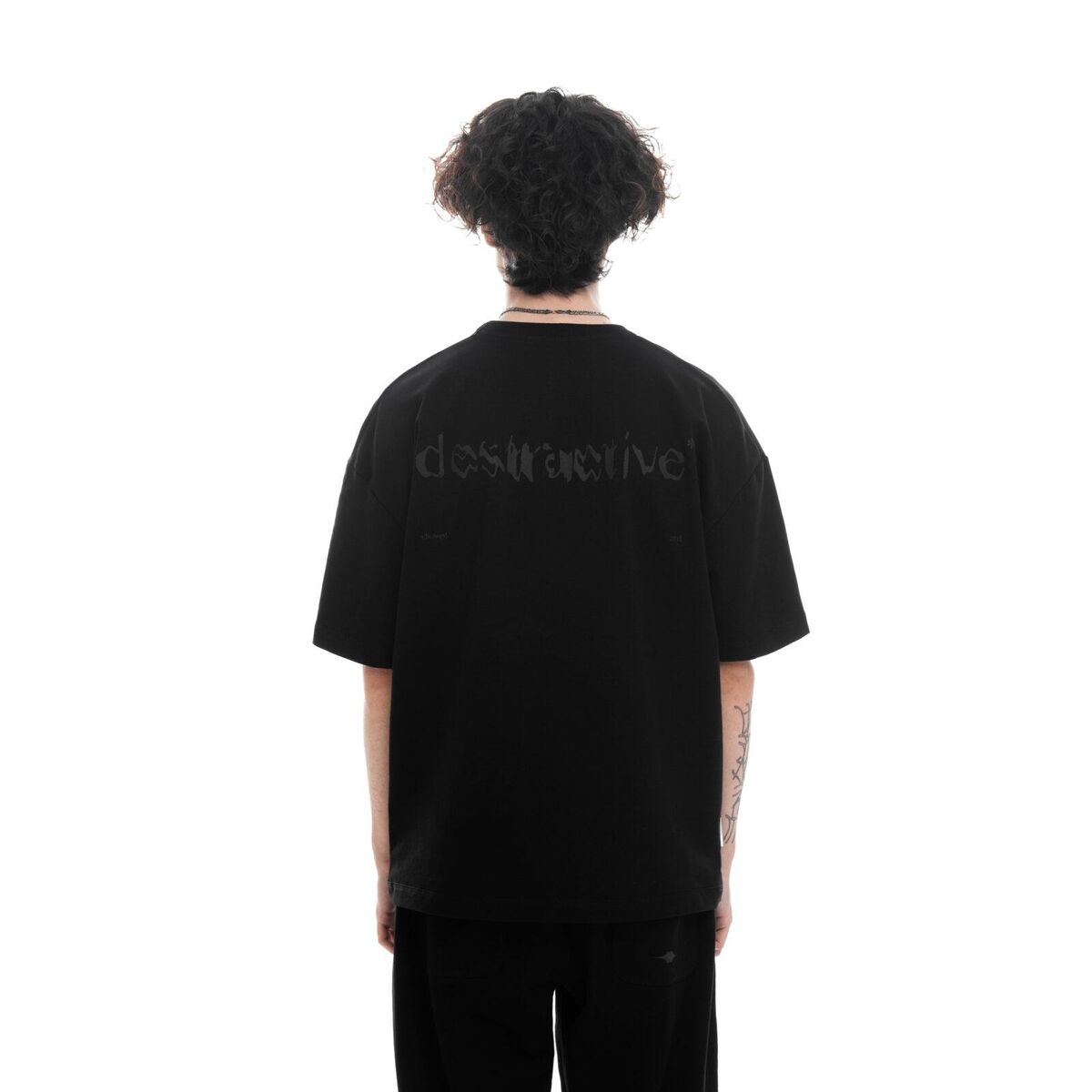 ОписаниеT-shirt destructive* – классическая футболка оверсайз кроя из плотного френч терри со звездой, выполненной в стиле коллекции. На спине разрушенный текст, исчезающий в беспросветности и отсутствии цвета.